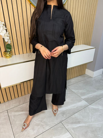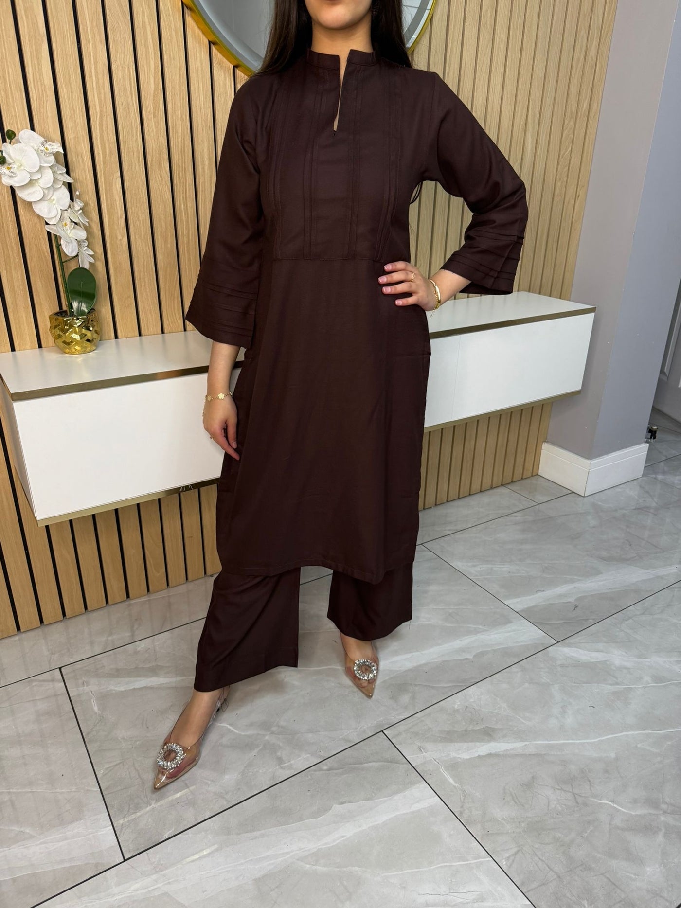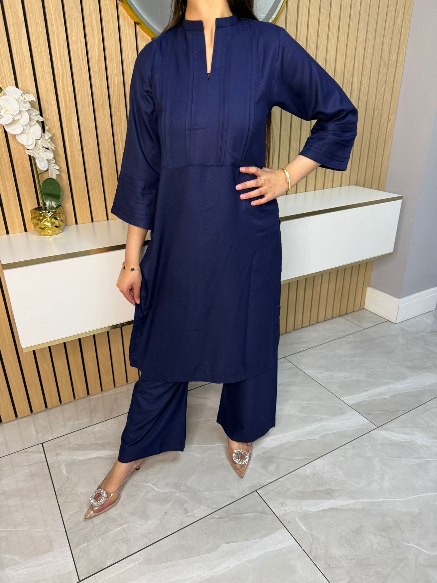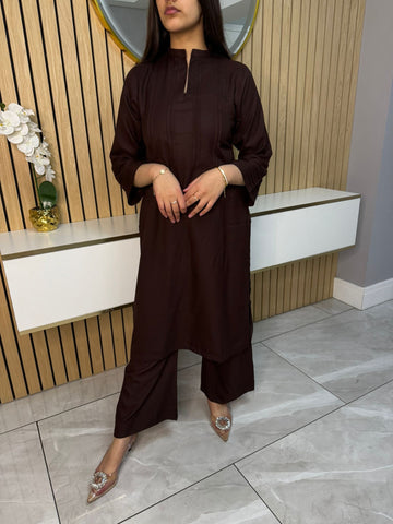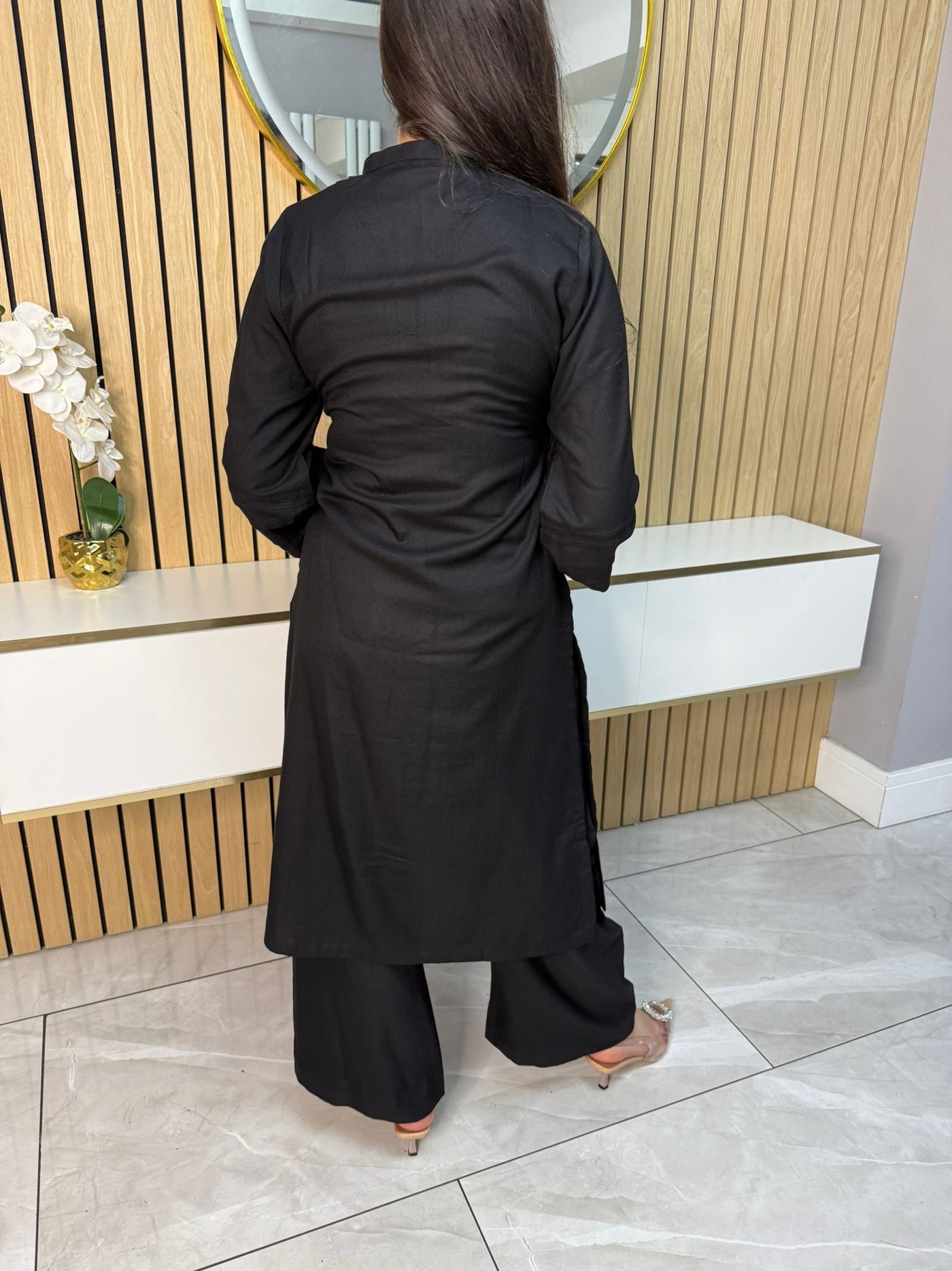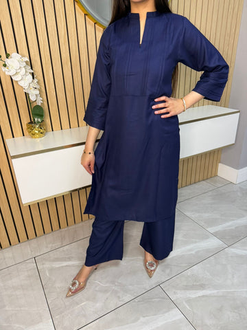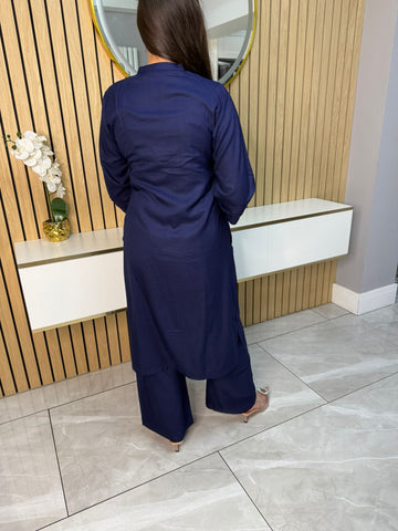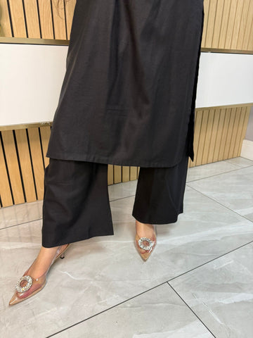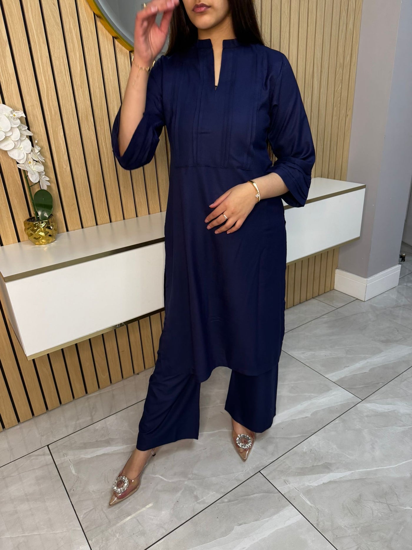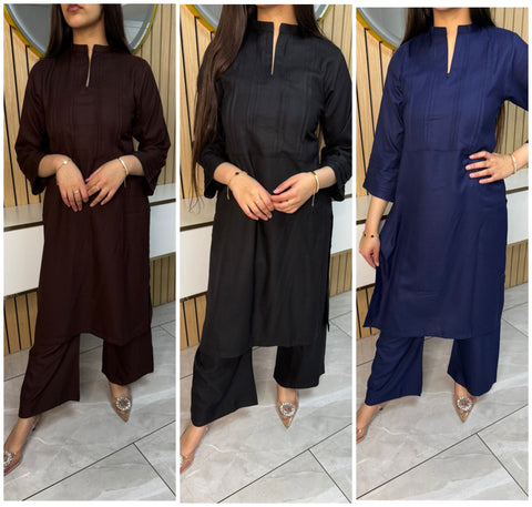 Product Description:This stunning 2-piece set features an kameez that flows beautifully, paired with matching palazzo pants for a chic and trendy look. The neckline adds a touch of elegance, while the plain kameez and palazzo bring a vibrant flair to the outfit. Perfect for both casual outings and special occasions, this set combines comfort and style effortlessly, making it a must-have addition to your wardrobe.