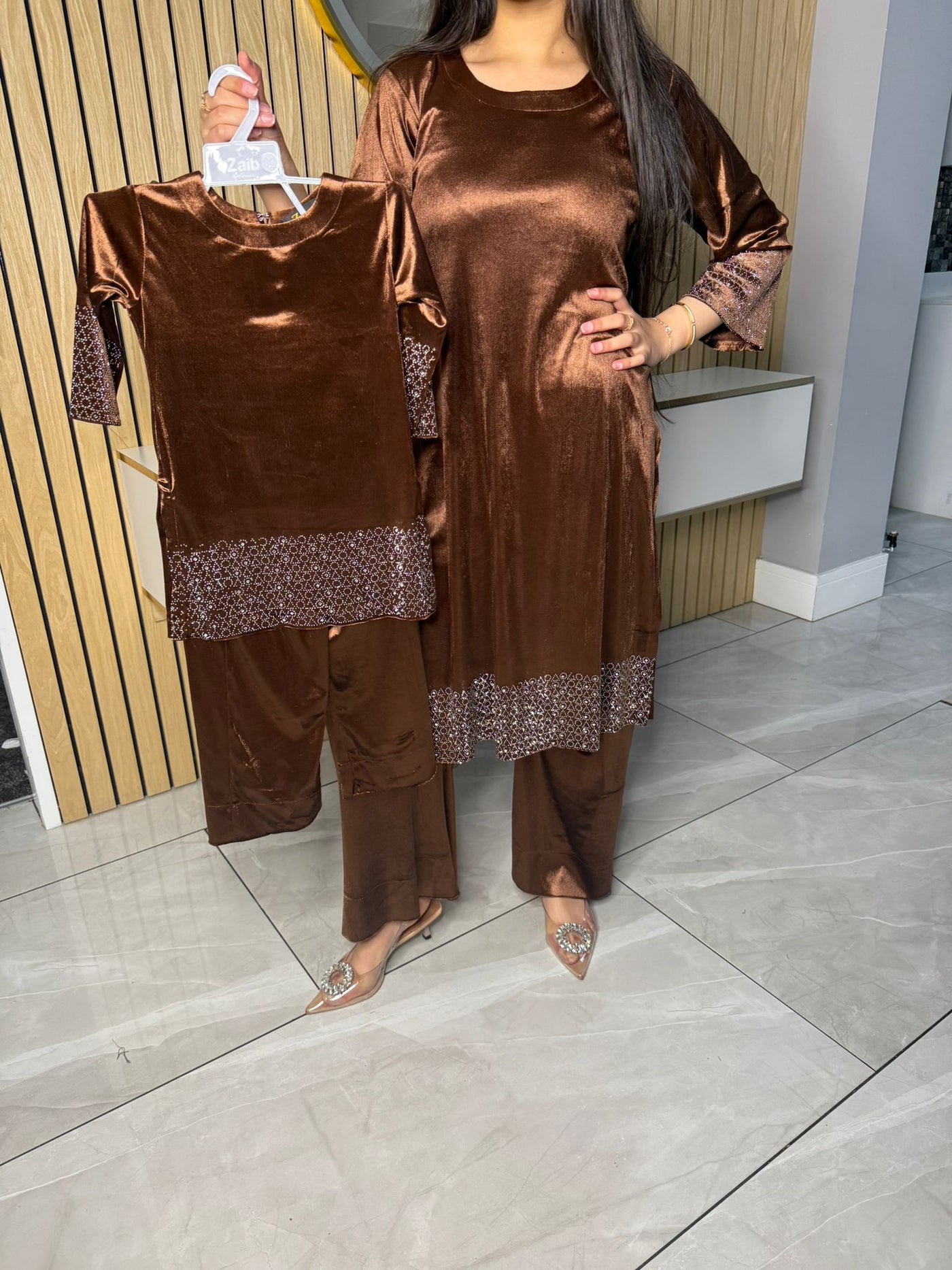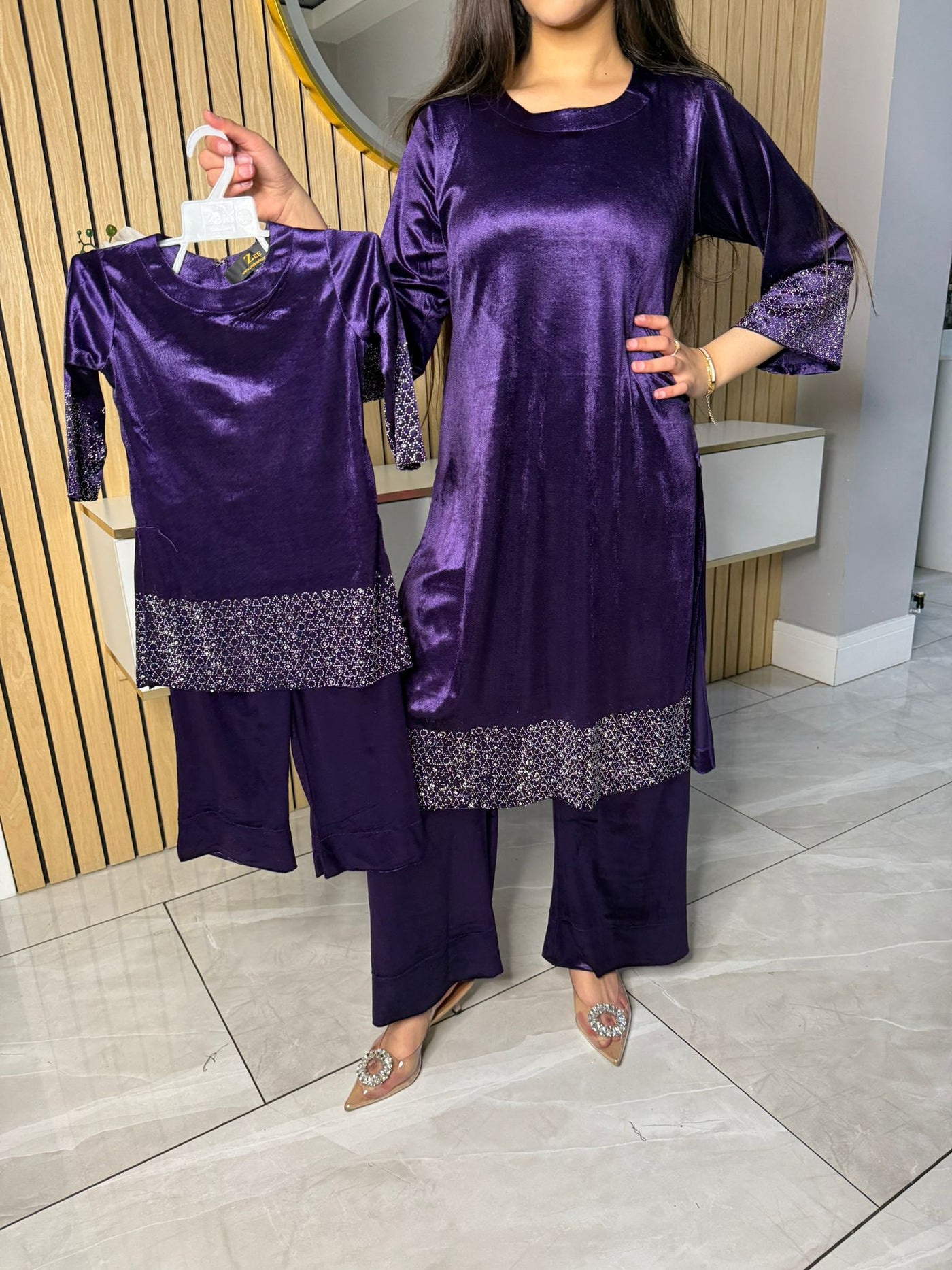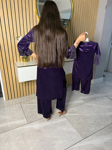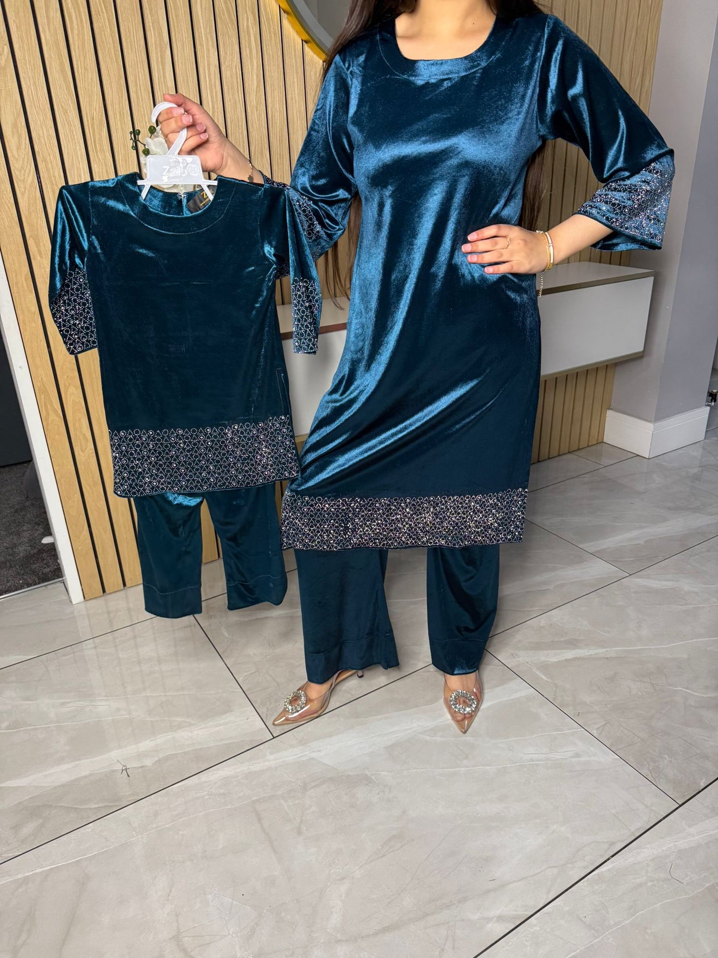 Aliyah 2pc Diamond Velvet Mother & Daughter Suits U3-B4 Sale