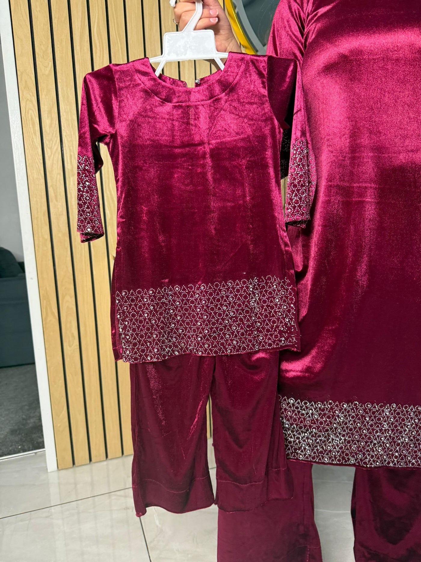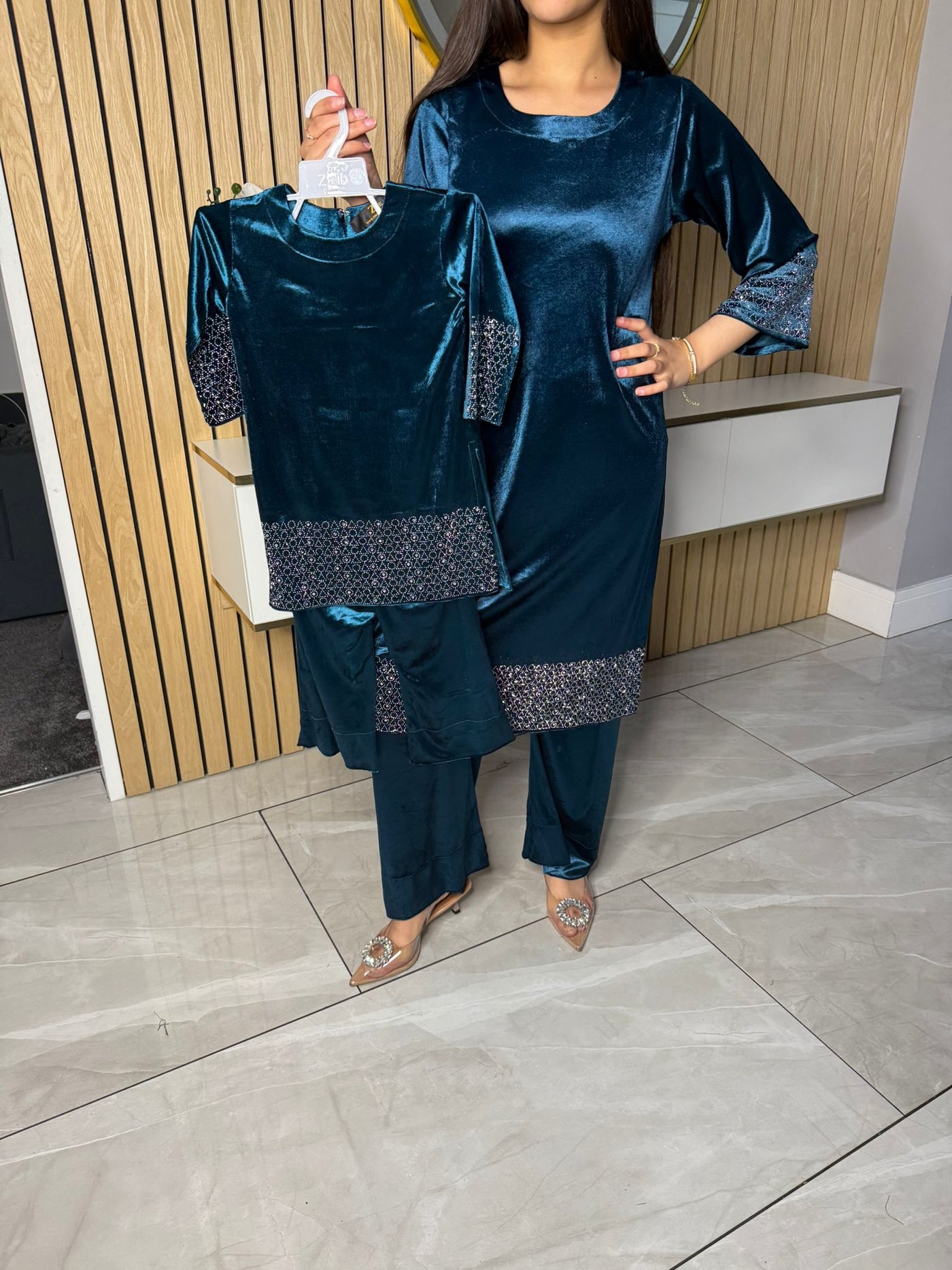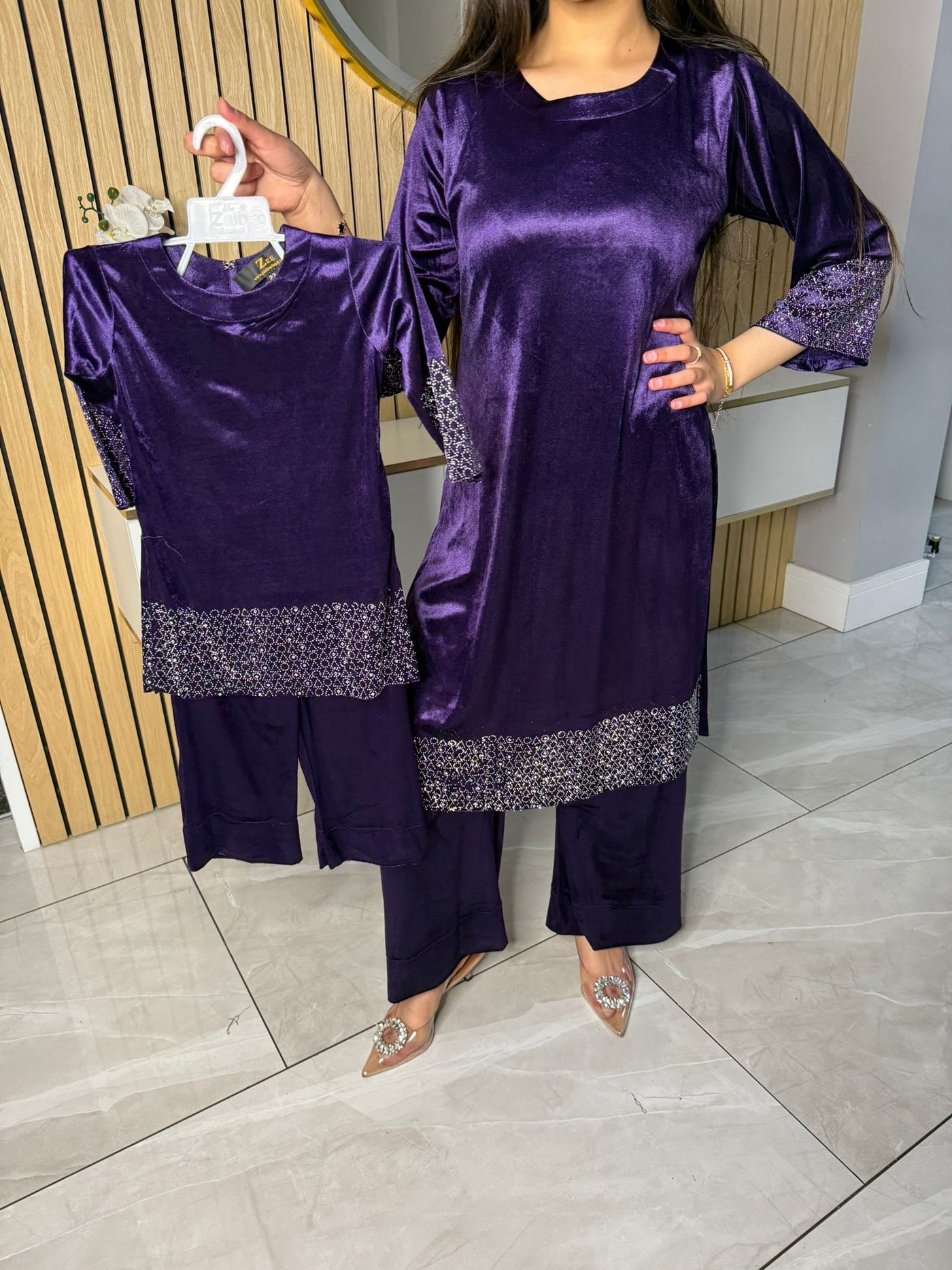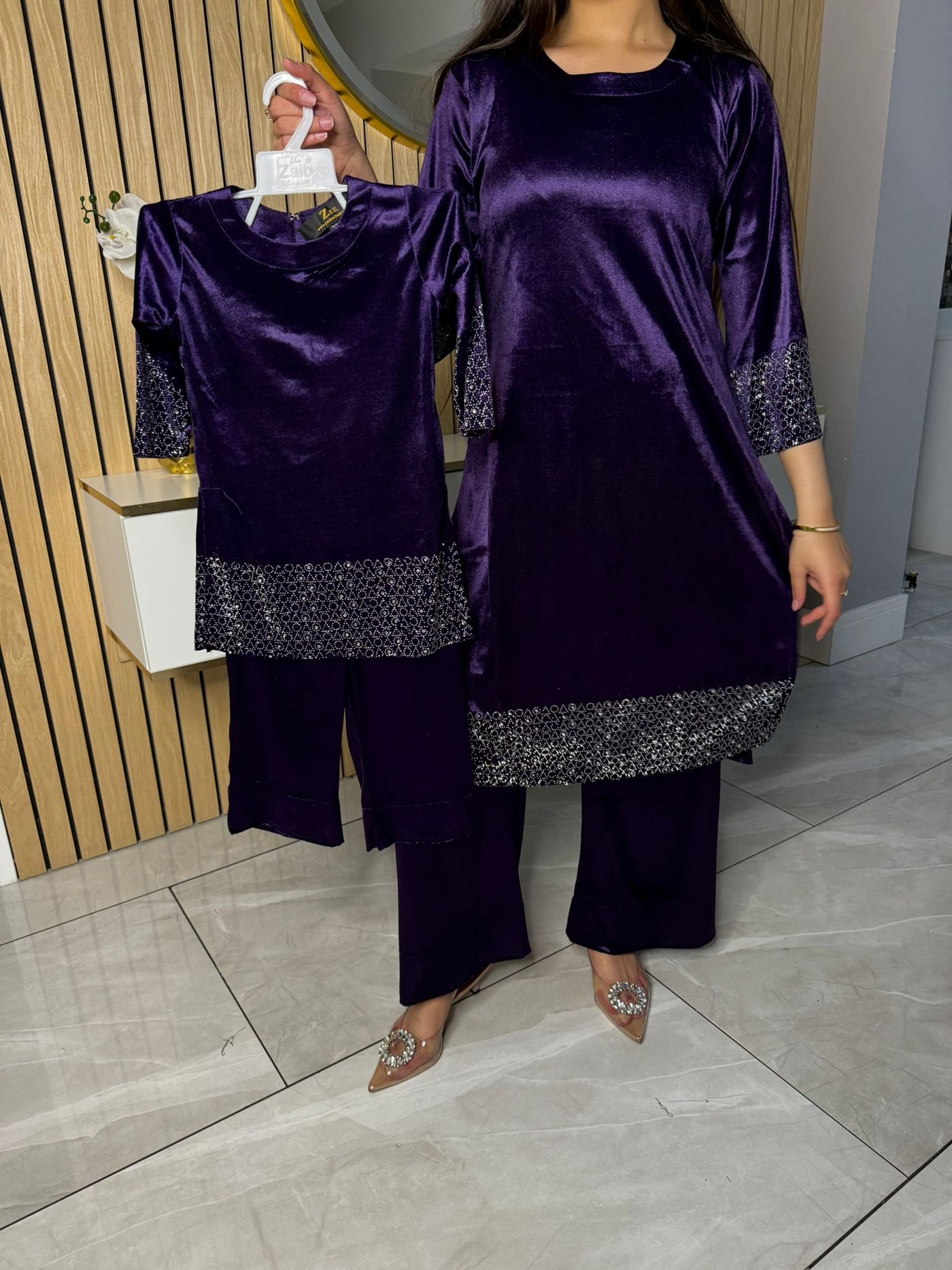 Aliyah 2pc Diamond Velvet Mother & Daughter Suits U3-B4 Sale