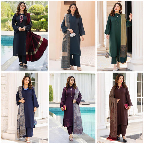 Zille Huma 3pc Dhannak Suit With Wool Shawl U4-A3 Sale