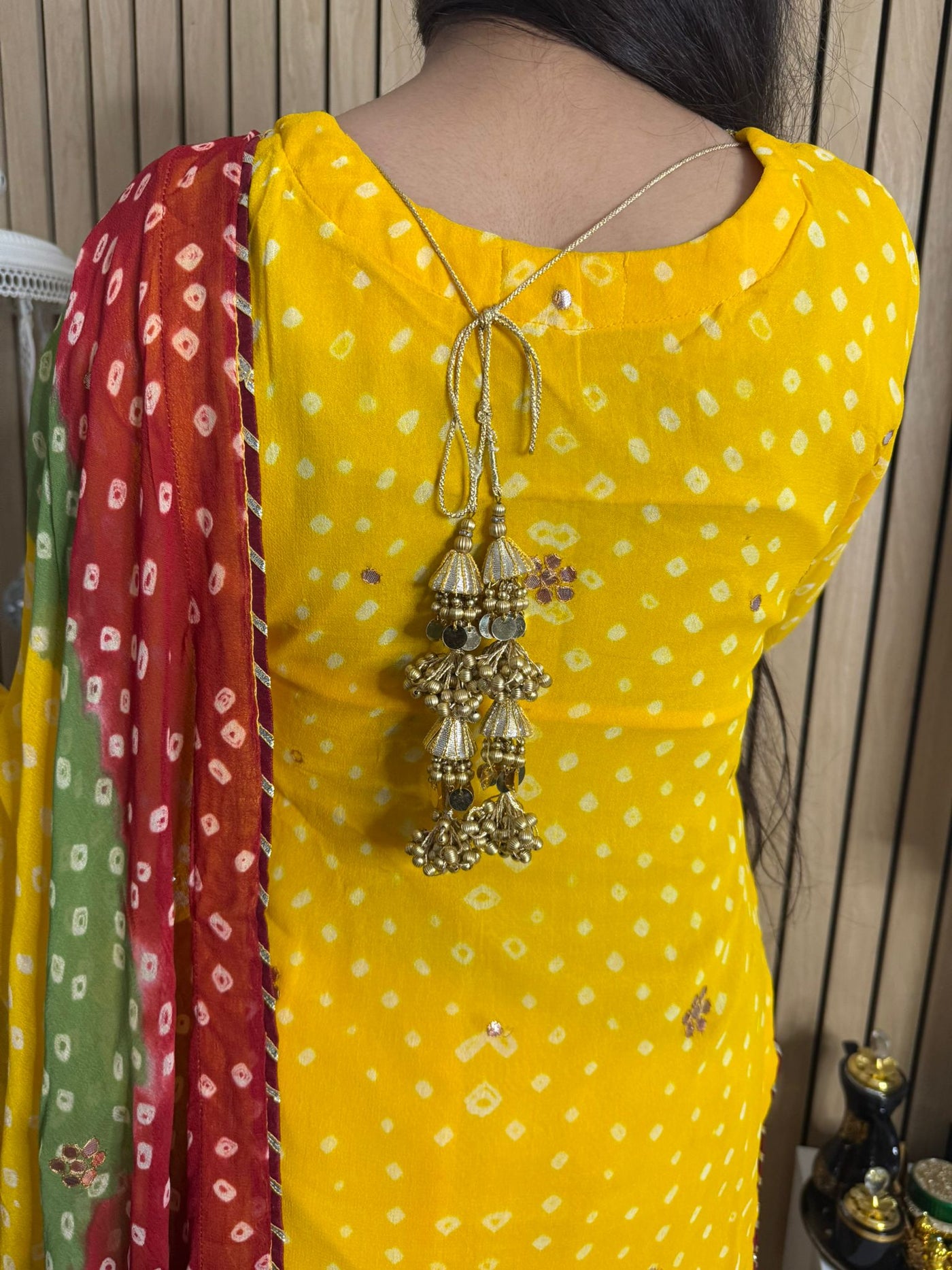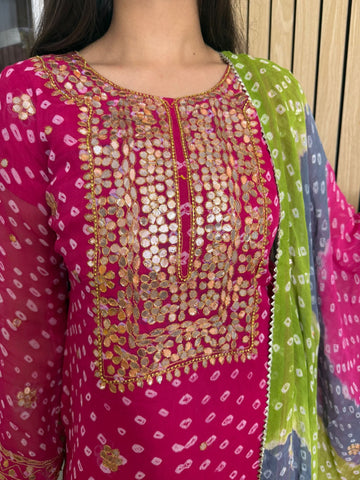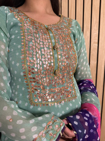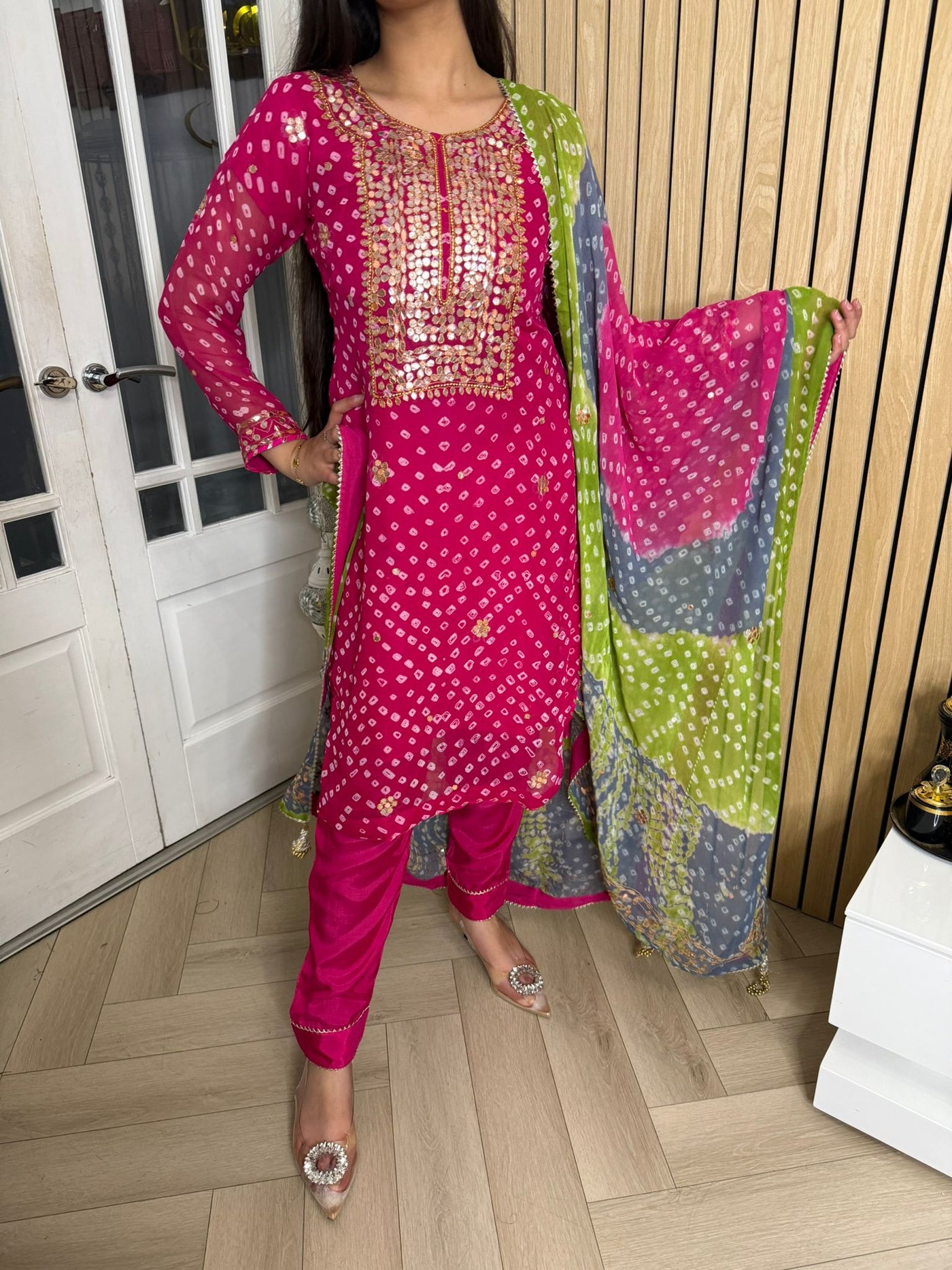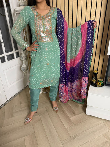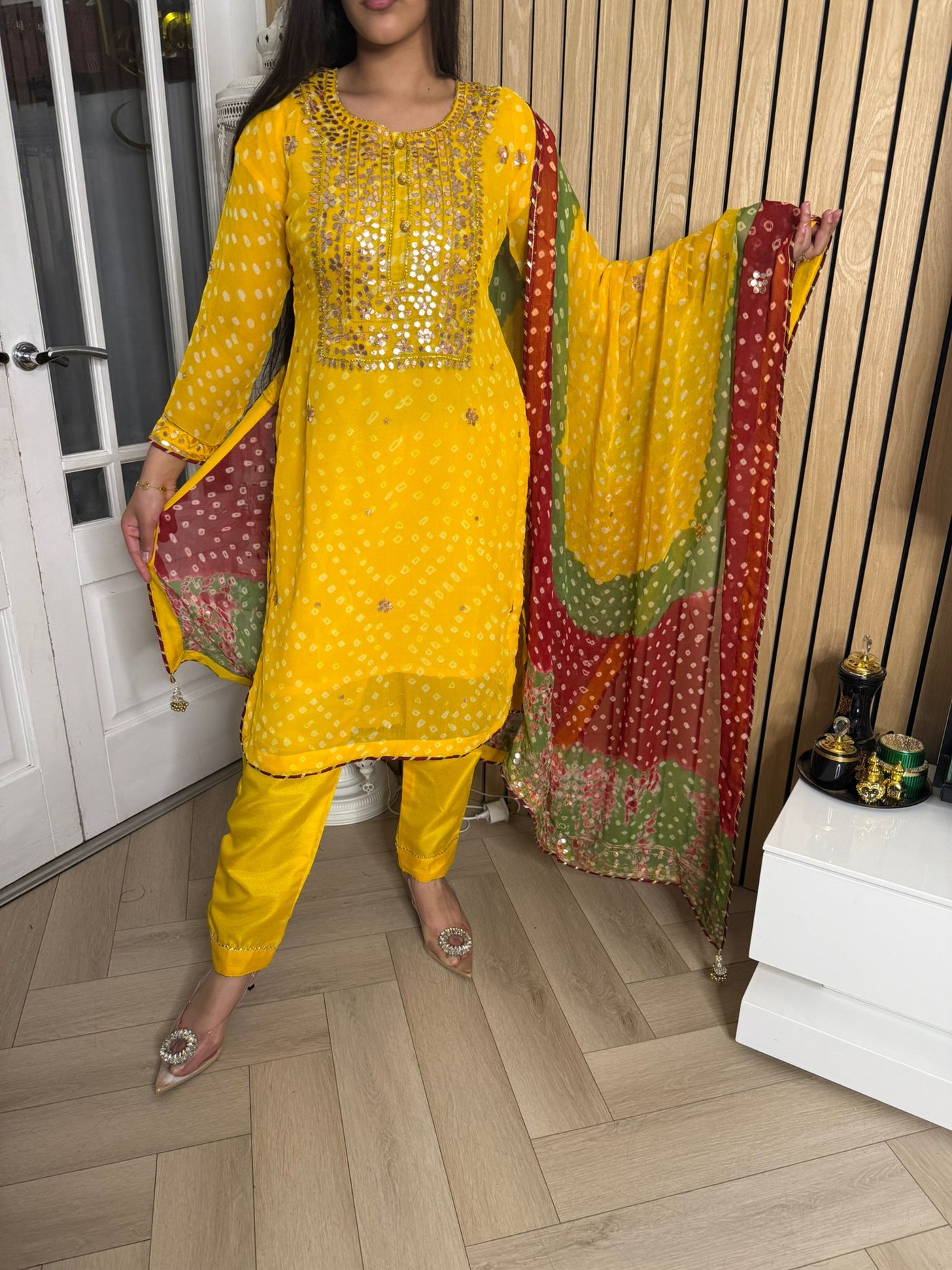 Product Description:This stunning three-piece suit is crafted from luxurious chiffon material,offering a soft and elegant feel. The long kameez features a beautiful embroidery that is showcased all over, creating a vibrant and eye-catching look. The neckline is detailed, adding a touch of sophistication, while the borders are thoughtfully designed to enhance the overall aesthetic. Accompanying the kameez are a matching shalwar and a dupatta, ensuring a cohesive and stylish ensemble. Perfect for any occasion, this outfit combines traditional charm with contemporary elegance.