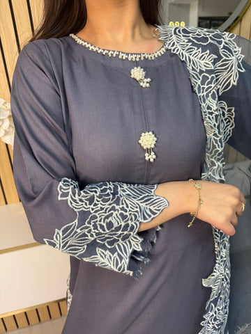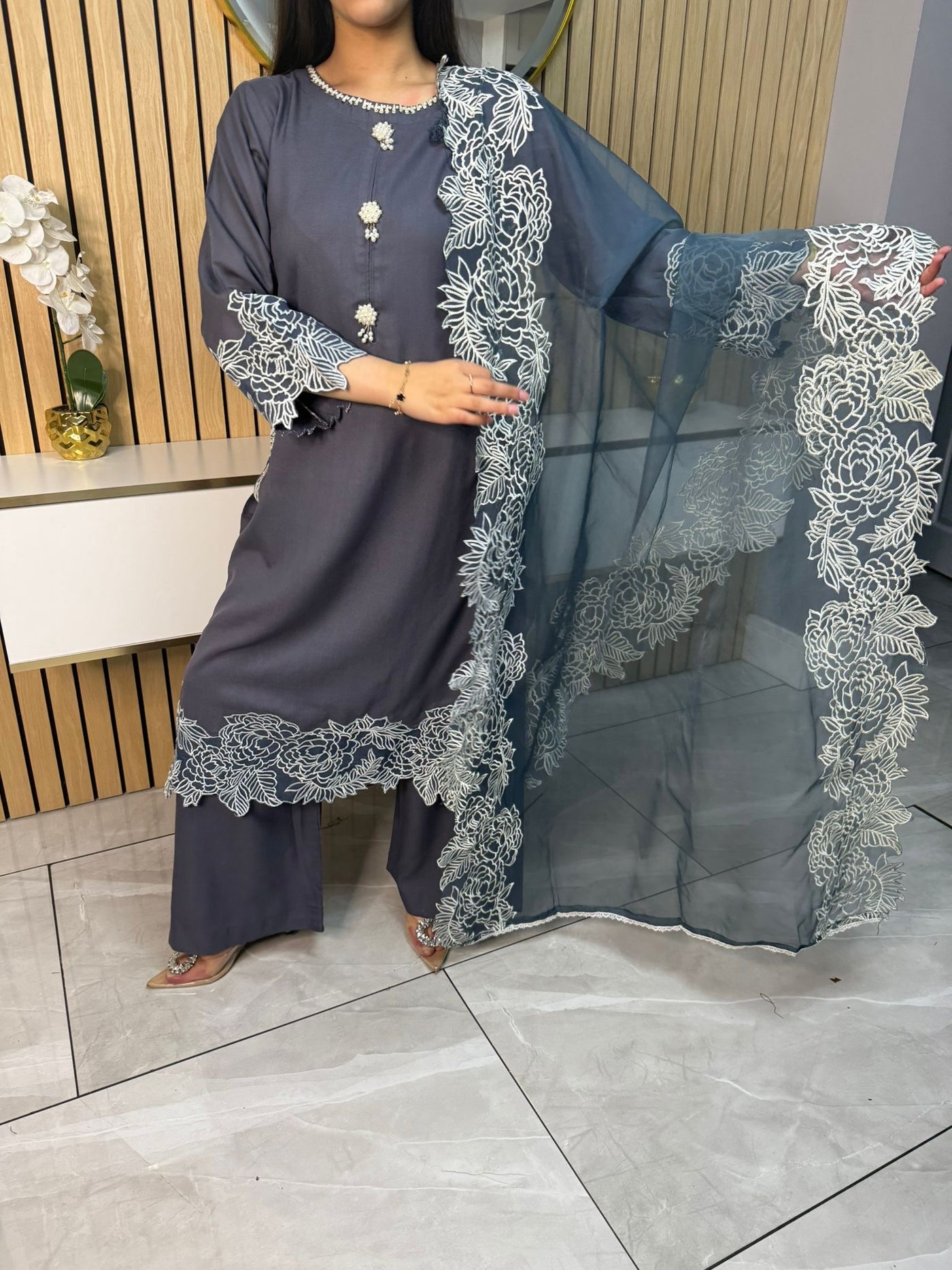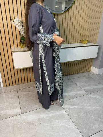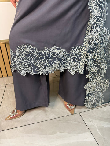 Amatullah 3pc Dhannnak Suit With Plazzo Trouser U2-A1 - Grey / Medium