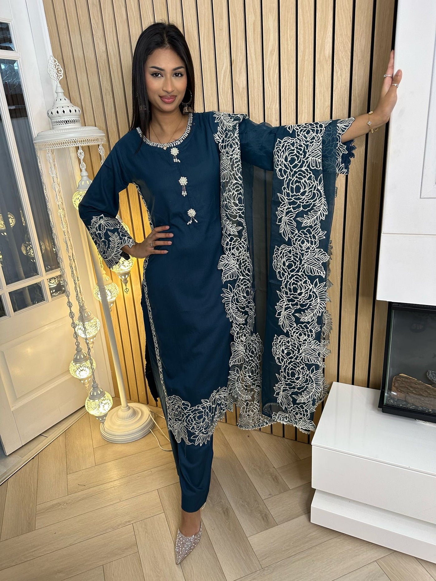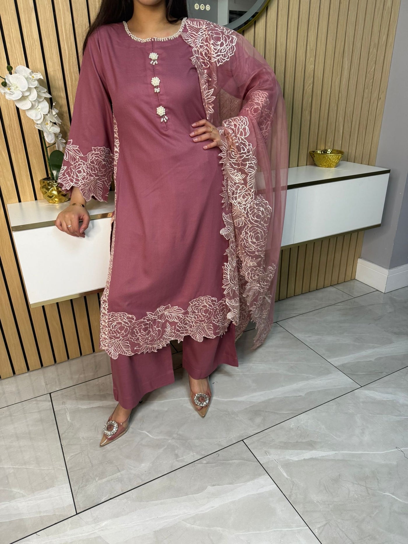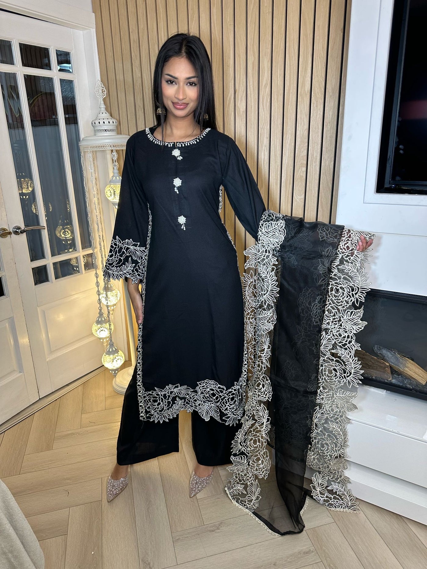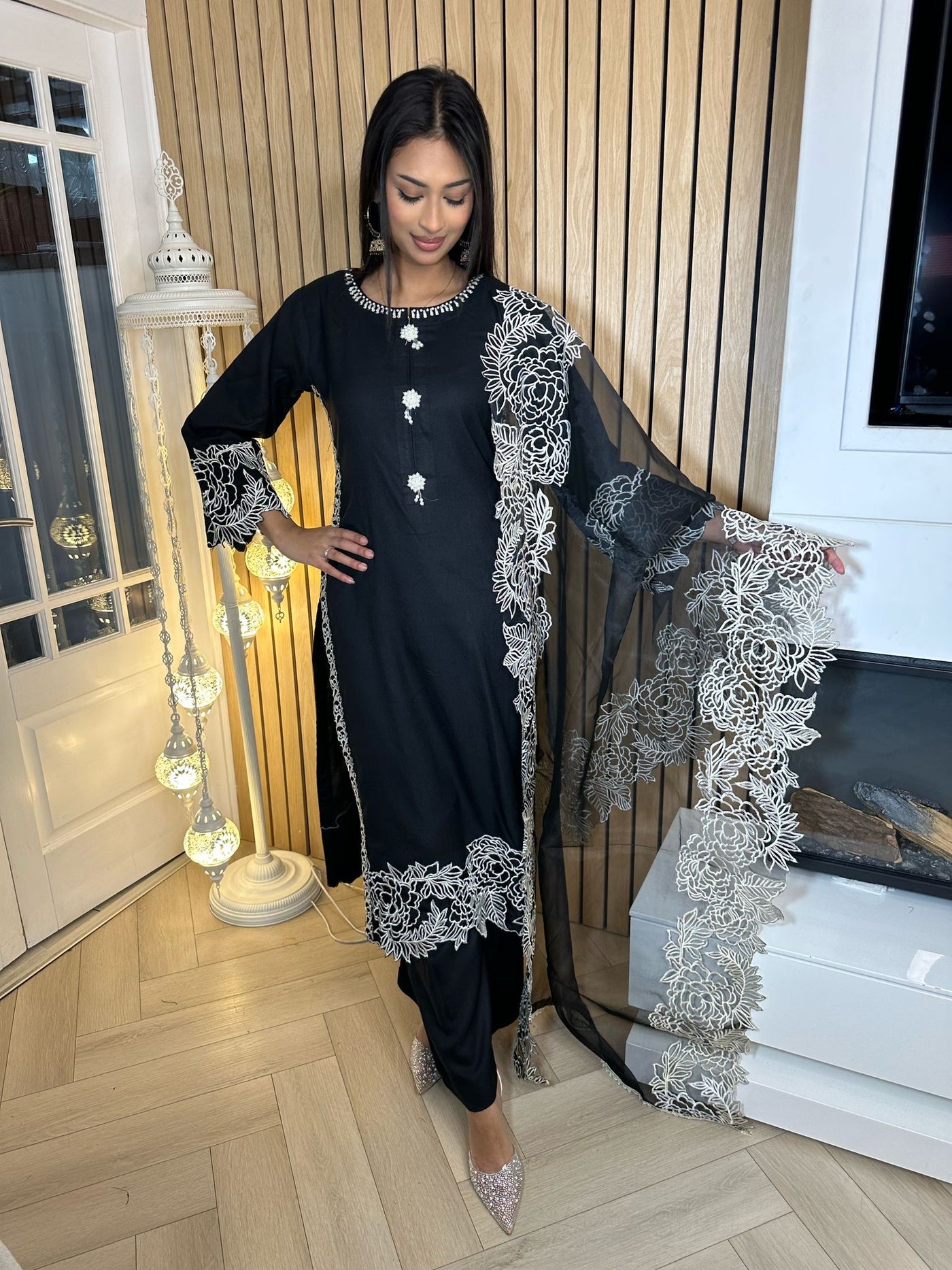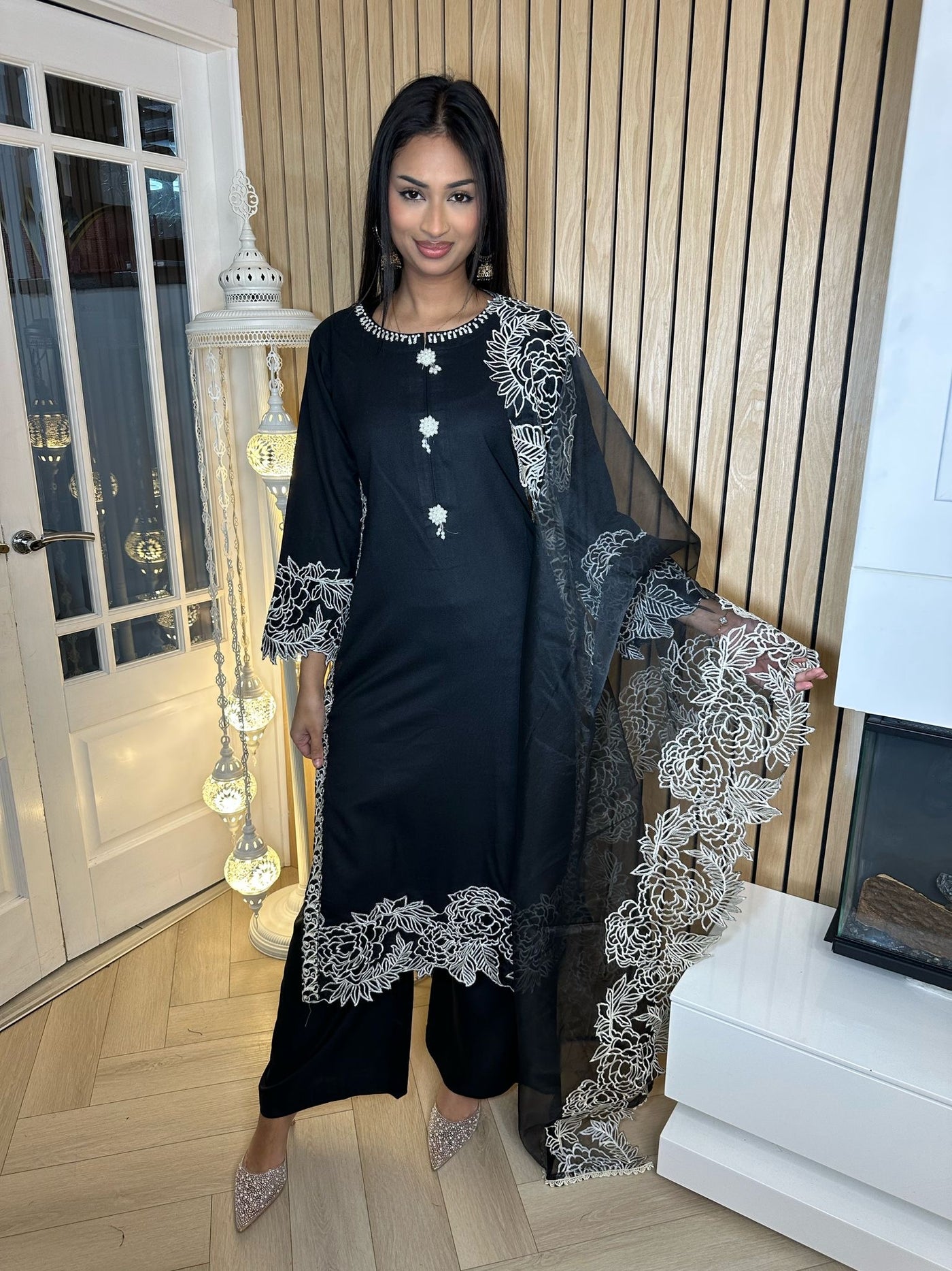 Amatullah 3pc Dhannnak Suit With Plazzo Trouser U2-A1 Sale