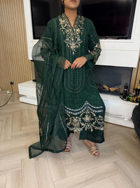 Salwa Chiffon 3PC Suit With Organza Duppata U2-E1 - Green / Small