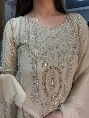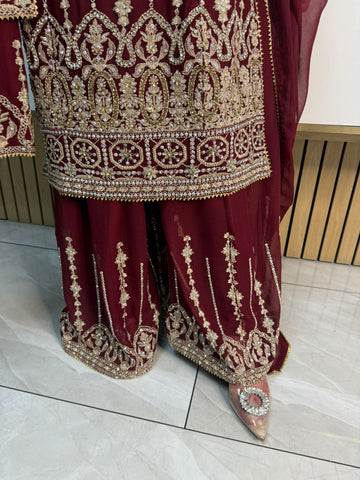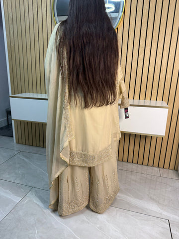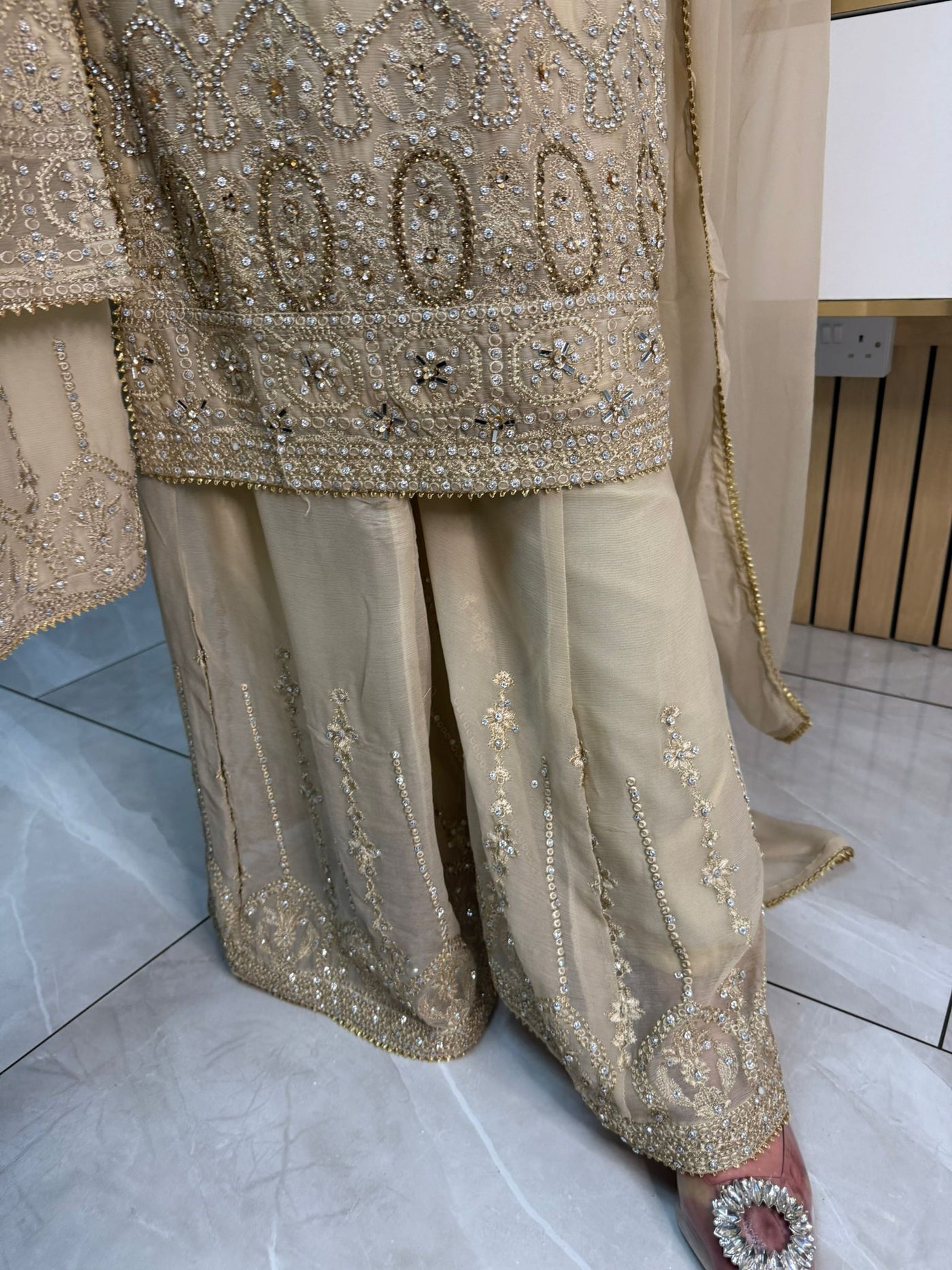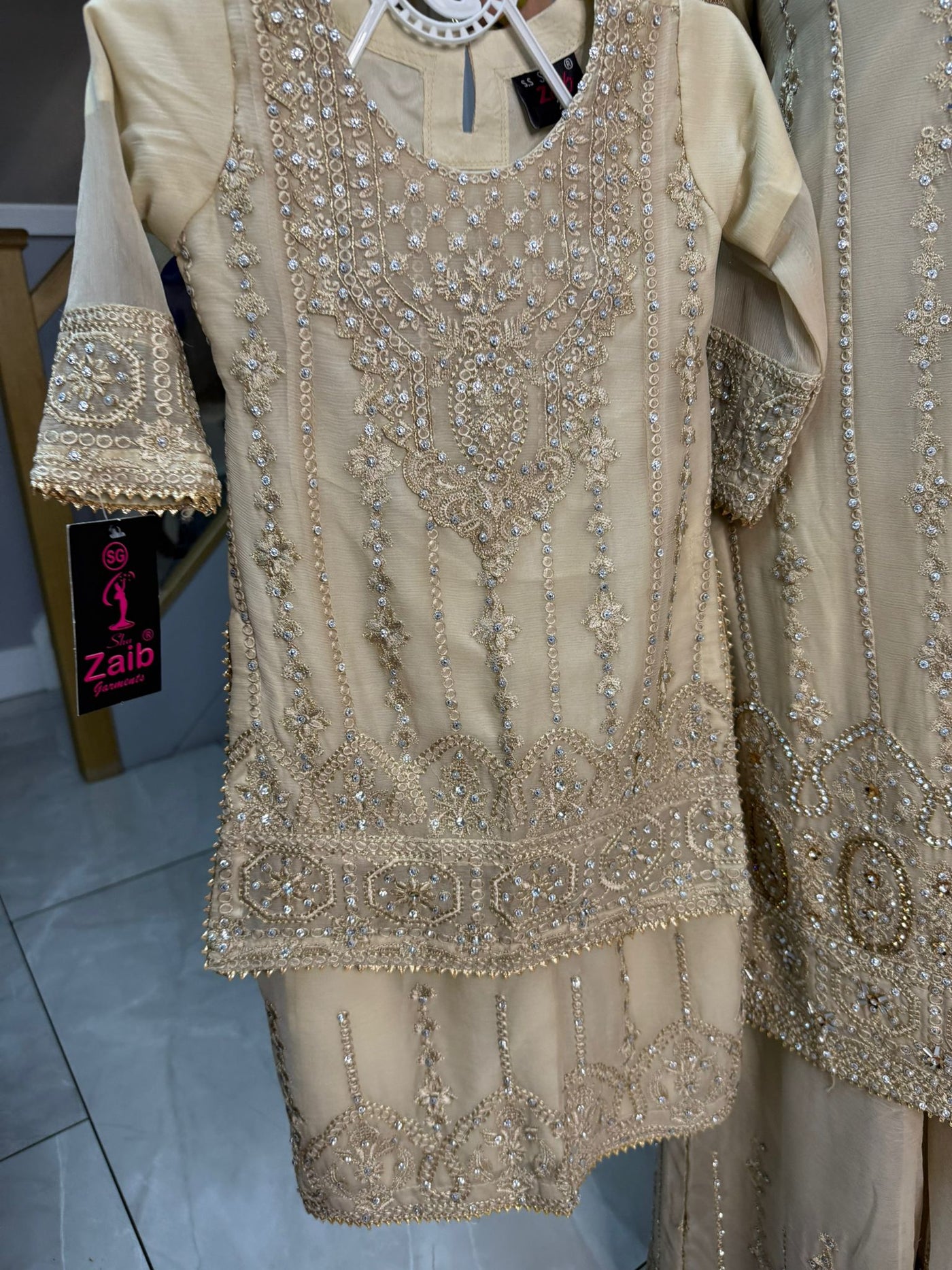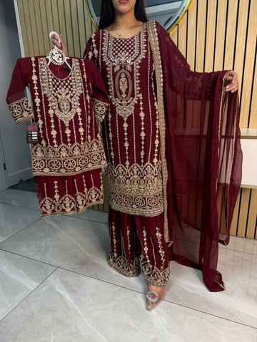 Product description:Introducing our exquisite 3-piece matching chiffon suit for mothers and daughters! This stunning ensemble features a beautifully crafted top adorned with intricate details, perfectly complemented by matching palazzo trousers for a chic and comfortable fit. The outfit comes with a contrasting dupatta that adds a touch of elegance and flair, making it ideal for any special occasion or family gathering. Celebrate your bond in style with this fashionable and coordinated look that showcases both sophistication and love. Perfect for creating cherished memories together!