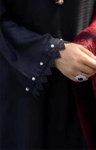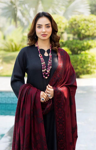 Zille Huma 3pc Dhannak Suit With Wool Shawl U4-A3 - Black / Small