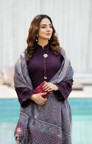 Zille Huma 3pc Dhannak Suit With Wool Shawl U4-A3 Sale